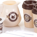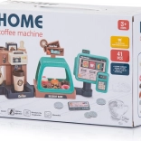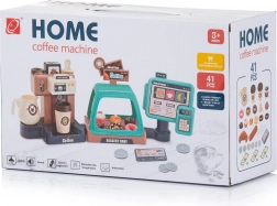 Sada obsahuje 41 rôznych kusov príslušenstva, vrátane kávovaru, šálok, nástroja na stláčanie kávy, mincí, bankoviek, pokladne a stojana na koláče.