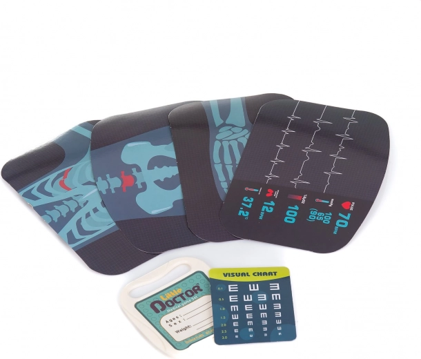 Detský lekársky vozík Chipolino premení každú hru na realistickú ambulanciu. Vďaka osvetlenému röntgenovému panelu a vymeniteľným šablónam (pľúca, chrbtica, ruka, EKG) si deti vyskúšajú základné vyšetrenia a naučia sa rozpoznávať časti ľudského tela. Integrované svetelné a zvukové efekty umocňujú atmosféru a podnecujú zvedavosť aj sústredenie.
