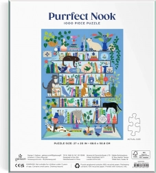 Farebné puzzle s motívom zvedavých mačiek medzi knihami a rastlinami poteší milovníkov zvierat aj literatúry. Ponúka 1000 dielikov, kvalitnú tlač a rozmer 68,6 × 50,8 cm. Vyrobené z FSC recyklovaného papiera a potlačené netoxickými farbami – skvelé na relax, tréning sústredenia aj ako štýlový darček.