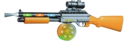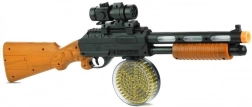 Špičkový dizajn: Puška AK 868-1 sa pýši čiernou konštrukciou s hnedými prvkami imitujúcimi drevo. Je vybavená bubnovým zásobníkom na zlaté náboje a odnímateľným zameriavačom, čo zaručuje jednoduché zameranie cieľa.