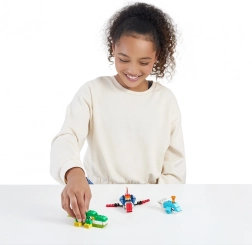 Vďaka pestrej škále farebných dielov a špeciálnych súčiastok ako plameňov alebo kolies stavebnica podporuje rozvoj jemnej motoriky a kreativity.