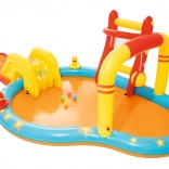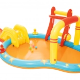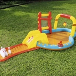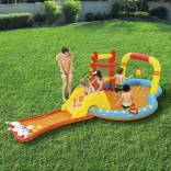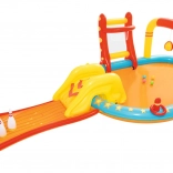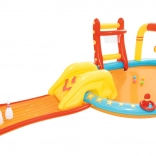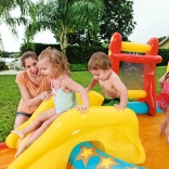 Doprajte deťom leto plné smiechu a pohybu s nafukovacím vodným hracím centrom BESTWAY. Kombinuje plytký bazénik, odnímateľnú šmýkačku a zábavné hry ako kolky, kôš a hádzanie krúžkov. Vďaka integrovanému postreku je hranie osviežujúce aj v horúčavách. Jednoduchá inštalácia, bezpečný plytký priestor a bohaté príslušenstvo zaistia nekonečnú zábavu, aktívny pohyb aj príjemné ochladenie v letných dňoch.
