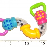 Objavte jednoduchú a zábavnú hračku pre bábätká – hrkálku s rôznofarebnými trubičkami, ktoré možno otáčať. Pri pohybe vytvára jemný hrkálkový zvuk vďaka guľôčkam vo vnútri, čím stimuluje sluch a podnecuje zvedavosť dieťaťa.