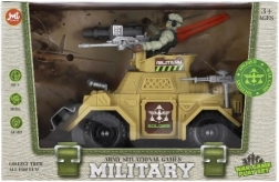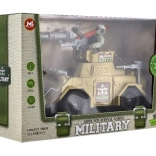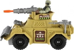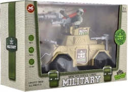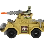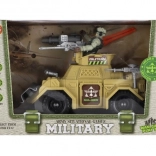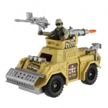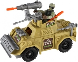 Robustné plastové auto s taktickými doplnkami, voľnobežné kolesá a detailný povrch pre vernú armádnu akciu.