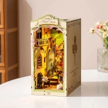 Objavte pôvab knižnej uličky s miniatúrnym kvetinárstvom, kde nechýbajú steny porastené brečtanom, klenuté okná, balkón ani odpočívajúca mačka. Diely sú očíslované a presne do seba zapadajú, takže si projekt užijete aj bez skúseností – bez lepidla a nástrojov. Integrované LED osvetlenie rozžiari každý detail a premení vašu knižnicu na útulné zákutie.