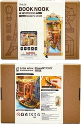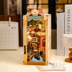 Objavte romantiku BENÁTOK vo svojej knižnici. Knižná zarážka Romantic Venice premení poličku na malebnú uličku s gondolou, maskami aj kaviarňou. Transparentný plast vytvára pôsobivý vodný efekt, ktorý spolu s LED osvetlením na dotykový spínač dodá scéne večernú atmosféru. Diely presne lícujú a skladajú sa bez lepidla, takže stavbu zvládnete pohodlne a čisto.