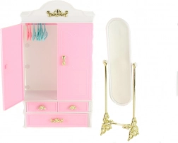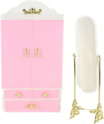 Začleňte do svojej detskej hry šatník a zrkadlo Glorie, ktoré prichádzajú s prehľadným dizajnom a funkcionalitou pre jej bábiky. Deti si môžu užívať uloženie oblečkov s patričnou starostlivosťou vďaka praktickým ramienkam, zatiaľ čo zrkadlo dodá ich hernej scéne nádych elegancie.