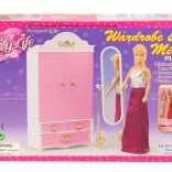 Šatník Glorie ponúka priestor na uloženie bábikových šiat s otvárateľnými šuplíkmi a dverami.