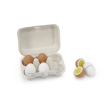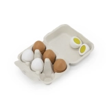 Tento úžasný set drevených vajíčok umožňuje deťom napodobňovať dospelých a rozvíjať ich záujem o kulinárstvo. Sú ideálne pre hrané kuchynky alebo detské obchody. Každé vajíčko je spojené na suchý zips a je možné ho rozdeliť, čo poskytuje deťom možnosť simulácie varenia. Hravosť a vynaliezavosť sú zaručené!