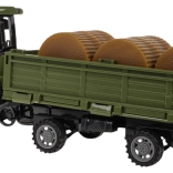 Zelený diaľkovo ovládaný traktor s prívesom je navrhnutý pre deti od 3 rokov. Vyrobený z kvalitného plastu, má gumové pneumatiky a odnímateľný príves, čo umožňuje realistický herný zážitok.