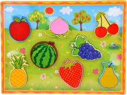 Drevená vkladačka Ovocie je ideálnou hračkou pre deti, ktoré sa chcú naučiť rozpoznávať rôzne druhy ovocia. Táto hračka podporuje: