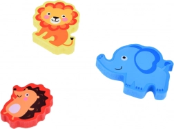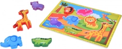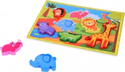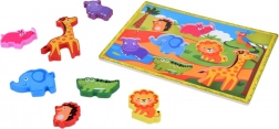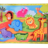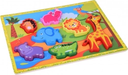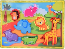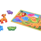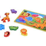 Táto skladačka motivuje deti k hre a učí ich názvy exotických zvierat.