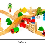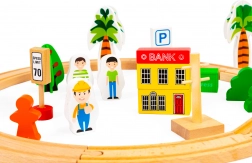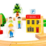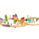 Táto drevená sada vláčikov od značky Ecotoys je kompletným komplexom herných prvkov, obsahujúcich 74 dielov ako vozidlá, dopravné značky a budovy, ktoré deti môžu ľubovoľne skladať do atraktívneho aranžmánu. Je navrhnutá s ohľadom na detskú bezpečnosť, z kvalitných materiálov. Vďaka veľkému množstvu príslušenstva sa deti môžu venovať hre po dlhé hodiny, a pritom rozvíjať zručnosť, koordináciu a kreativitu.