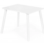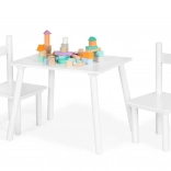 Praktická biela sada pre deti od 3 rokov: stôl a dve stoličky s borovicovými nohami a doskou z MDF. Ideálna na hranie, tvorenie aj učenie. Stabilná konštrukcia, jednoduchá údržba, škandinávsky dizajn a veľká pracovná plocha pre dve deti.