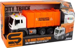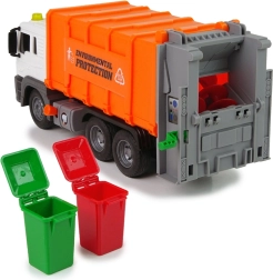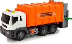 Objavte zábavnú a vzdelávaciu hračku, ktorá podporuje zodpovedný vzťah k prírode. Oranžové smetiarske auto je detailne spracované, má funkčnú korbu a pomocou jednoduchého mechanizmu deti vysypú obsah košov do kontajnera. Zvukové efekty podporia realistickosť hry a frikčný pohon zaistí svižnú jazdu bez batérií v kolesách.