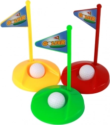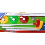 Všetko potrebné na začiatok hry v jednom: palice, loptičky, jamky aj vlajočky v ľahkom a ľahko skladovateľnom balení.