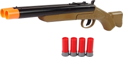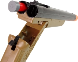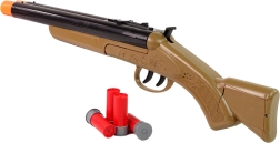 Brokovnica vyzerá presne ako tá, ktorú majú kovboji vo westernoch. Uprostred zbrane je páka, ktorá ju zloží na polovicu. To umožňuje vloženie veľkých nábojov. Ďalším plynulým pohybom nahor ju zatvoríte a je pripravená na streľbu. Vo vnútri sú dva otvory na náboje, môžete vystreliť dve rany naraz. Nebudú strieľať súčasne, dve spúšte vám umožnia strieľať jednu po druhej. Brokovnica vydáva iba zvukové efekty, z hlavne nič nevychádza, čo zaručuje bezpečnosť pre vaše dieťa.