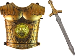 Predstavujeme detský rytierky kostým, ktorý prenesie každého malého hrdinu do kúzelného sveta rozprávok. Zlaté brnenie s doplnkami, ako sú chrániče, štít a koruna, dáva dieťaťu pocit skutočného stredovekého bojovníka. Všetky časti sú vyrobené z kvalitného a bezpečného plastu, ktorý zaručuje dlhodobú a bezpečnú hru.