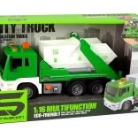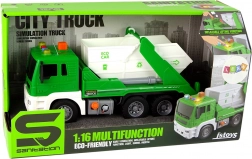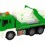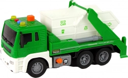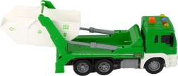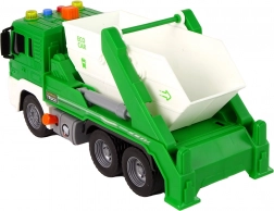 Táto detailne spracovaná zelená smetiarska súprava poteší každé dieťa, ktoré obdivuje vozidlá upratovacích služieb. Trenie (zotrvačný) pohon zadnej nápravy zaistí svižnú jazdu – stačí postrčiť a auto sa rozbehne. Otvárateľný kontajner umožní vysypať odpad na správne miesto a pomocou „pumpy“ možno celý korbový kontajner zdvihnúť dozadu.