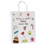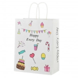 Táto papierová taška je ozdobená farebnými grafikami a nápisom "Happy Every Day", čo ju robí vhodnou pre širokú škálu osláv, ako sú narodeniny, večierky alebo stretnutia s blízkymi.