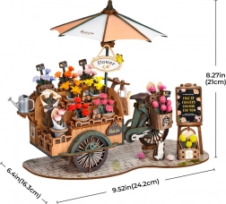 Objavte krásu pouličného predaja kvetín s dreveným 3D puzzlom Kvetinový vozík Rolife. Tento model prináša kúzlo starobylých trhov do vášho domova. Vozík je vybavený rustikálnymi kolesami, slnečníkom a kanvou na zalievanie. Hotový model sa stane krásnou dekoráciou, ktorá oživí každý interiér.