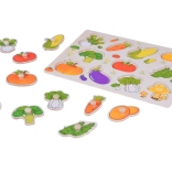 Skladačka predstavuje rôzne druhy zeleniny, čo je ideálne na naučenie sa a rozoznanie nových druhov zeleniny a ich tvarov.