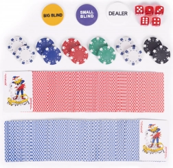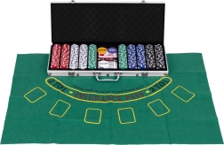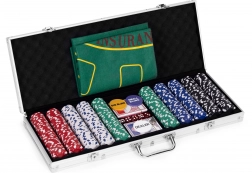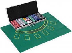 Obsahuje 500 žetónov, 2 balíčky kariet, kocky, a hraciu podložku. To všetko v praktickom uzamykateľnom kufríku.