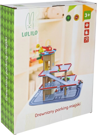 Objavte drevené viacposchodové parkovisko LULILO Benino s manuálnym výťahom, rampami a heliportom. Súčasťou sú 2 autíčka, helikoptéra, značky a kužele aj čerpadlo – všetko pre kreatívnu a bezpečnú hru.