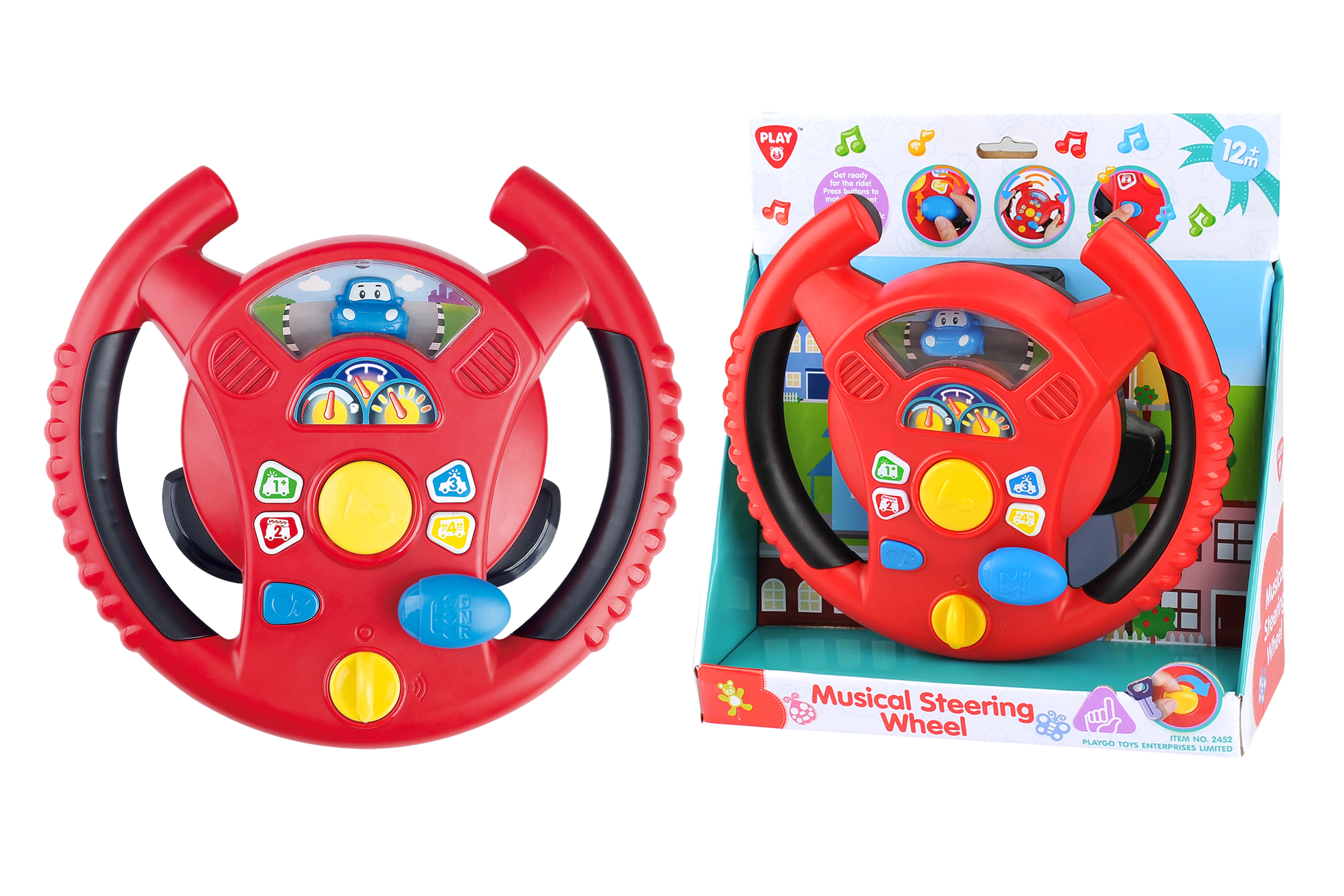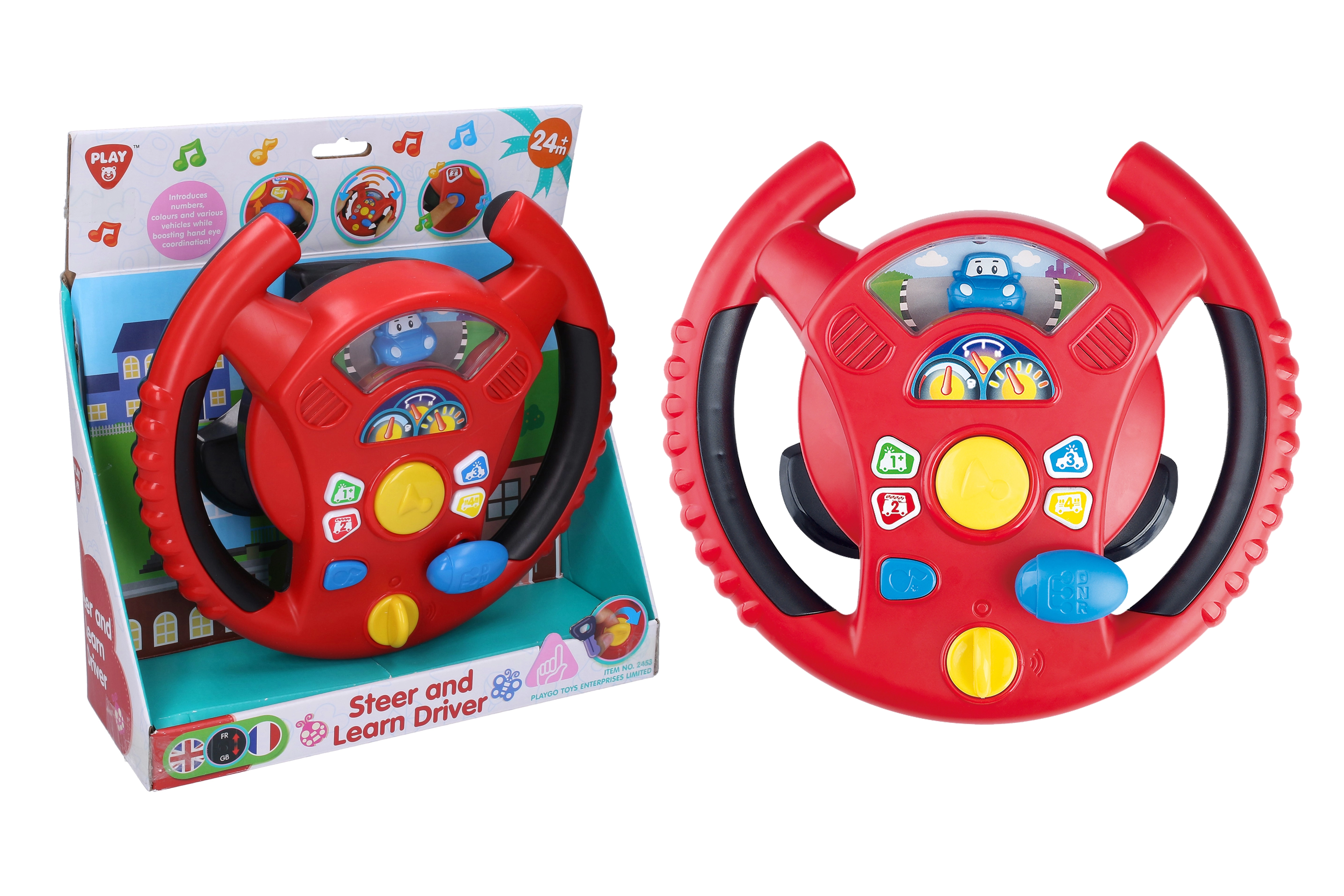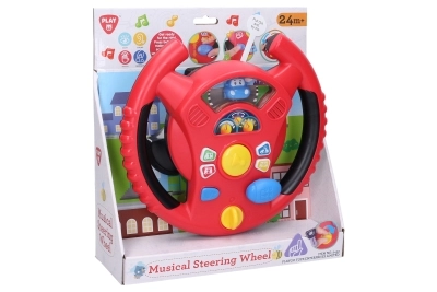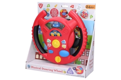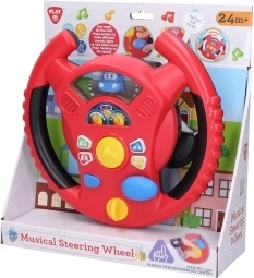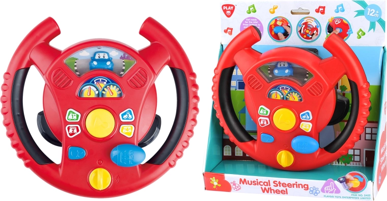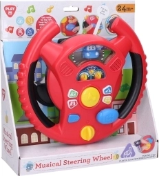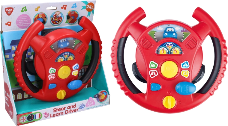Interaktívny volant Playgo prináša deťom zábavnú hru na šoférovanie v mini meste. Otočný spínač na spodnej strane volantu slúži na zapnutie, uprostred nájdete klaksón, napravo radiacu páku pre zvuky jazdy a na venci volantu malé tlačidlá s tónmi a melódiami. Deti si užijú realistické efekty, ktoré pripomínajú skutočné auto, a pritom rozvíjajú koordináciu a predstavivosť.