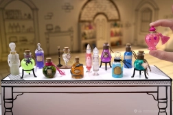 Premeň guľu na dekoráciu – obal sa po otvorení zmení na štýlovú fľašu s elixírom, ktorú môžeš vystaviť na priloženom stolíku. Nazbieraj rôzne kotlíky, fľaštičky, lyžičky a ingrediencie a rozširuj svoju magickú poličku o ďalšie mini poklady.