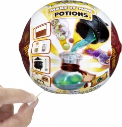 Vstúp do sveta kúziel a miešania elixírov! V každej guli Miniverse Make It Mini Potions nájdeš starostlivo spracované mini dieliky a doplnky, s ktorými krok za krokom vytvoríš svoju miniaturu ikonického elixíru z filmu HARRY POTTER. Po dokončení zmes vytvrdni na slnečnom svetle alebo inom UV svetle a získaj trvalú dekoráciu do svojej zbierky.