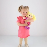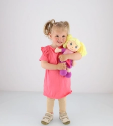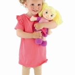Celá bábika je z hebkej látky, ktorá je príjemná na dotyk a vhodná aj pre najmenšie bábätká.