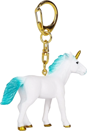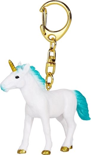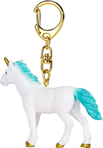 Biely jednorožec s tyrkysovou hrivou a zlatým rohom aj kopytami dodá kľúčom a taškám jedinečný šmrnc.