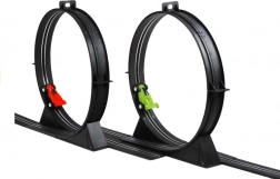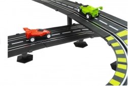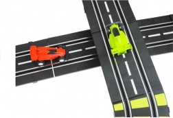 - Kompletný set: dva ovládače (joysticky), 2 závodné autá, počítadlá kôl, slučky, most, dekorácie a vlajočky.