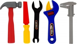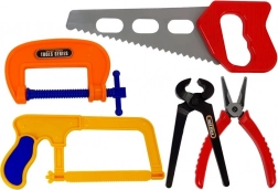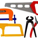 Sada obsahuje nástroje vyrobené z bezpečného a odolného plastu v živých farbách, ktoré napodobňujú skutočné predmety.