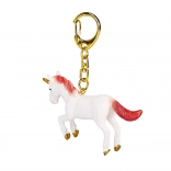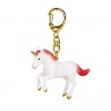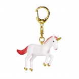 Tento prívesok s jednorožcom v dynamickej póze dodá vašim kľúčom či taške rozprávkový nádych. Vďaka pevnému kovovému uchyteniu a odolnému prevedeniu z PVC bez ftalátov je ideálny na každodenné používanie. Precízna ručná maľba zvýrazňuje červenú hrivu a chvost, zlatý roh a kopytá.
