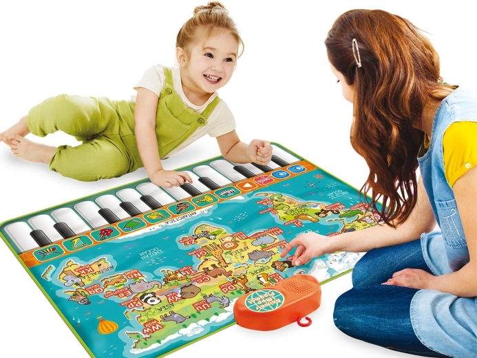 Objavujte svet zvukov a písmen s touto zábavnou a vzdelávacou podložkou. Deti si na nej nielen zahrajú na klavíri, ale tiež spoznajú zvuky zvierat a rôzne hudobné nástroje. Vďaka mape na povrchu podložky je učenie hravé a prirodzené.