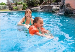 Vďaka týmto rukávnikom si deti môžu užiť radostné chvíle vo vode, zatiaľ čo sa učia plávať pod dohľadom, ako ukazuje obrázok pohody pri bazéne.
