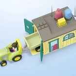 - Stajňa s triediacou strechou, traktor s hákom, príves s otváracou bočnicou, figúrky rodiny, zvieratá, doplnky (balíky, sudy, vrecia, fúrik a i.)