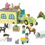 Traktor s hákom a príves s otváracou bočnicou zvládnu každý úkol. Dospelá figúrka môže viesť fúrik, dieťa sa môže posadiť na koníka a spoločne sa postarať o zvieratká a dvor. Set možno kombinovať s ďalšími farmárskymi sadami pre ešte väčší svet fantázie.