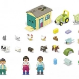 S týmto farebným setom si deti vytvoria vlastný svet na farme – od nakladania balíkov slamy cez kŕmenie zvieratiek až po vychádzky na koníkovi. Interaktívne prvky, ako je triediaca doska na streche podľa farieb a tvarov, podporujú učenie hrou a zábavné opakovanie.