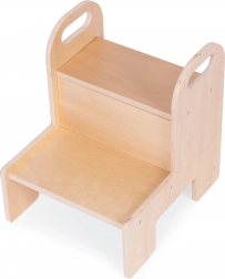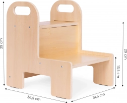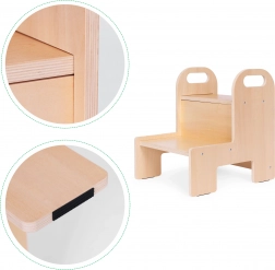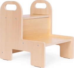 Silná 12 mm preglejka, zaguľatené hrany a dva priestranné schodíky poskytujú deťom istotu pri každodennom používaní v kuchyni aj kúpeľni.