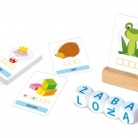 Kocka po kocke. Písanie je jednoduchá vzdelávacia hra pre najmenšie deti, ktorá podporuje učenie písania a čítania. Zo sady ŠIESTICH kociek je potrebné vytvoriť rady troj-, štvor-, päť- alebo šesťpísmenových slov, ktoré opisujú obrázky zobrazené na kartách. Hra, ktorá podporuje deti pri rozpoznávaní písmen a skladaní slov z nich. Pomáha rozvíjať slovnú zásobu, precvičovať sústredenie a rýchle myslenie.