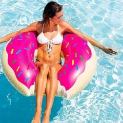 Zábavný nafukovací kruh v tvare donutu s ružovou polevou a farebnými posýpkami prinesie leto plné pohody. Ideálny na relax pri bazéne aj letnú dovolenku. Ľahký, odolný a ľahko skladný – stačí nafúknuť a užívať si komfortné leňošenie na vode a štýlový dizajn s efektným „odhryznutím“.