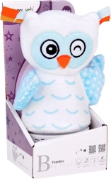 Integrovaná hracia skrinka prehráva ukľudňujúce melódie a zvuky prírody (napr. šum vody), ktoré podporujú relaxáciu a ľahké zaspávanie. Plyšové telo je príjemné na dotyk a po ľahkom postrčení sa sova jemne pohupuje, čo deti zaujme a upokojí.