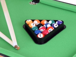 V balení nájdete všetko potrebné: 2 detské tága, kompletnú sadu gulí s bielou guľou, trojuholník na rozostavenie, kefku na údržbu plátna a kriedu na lepšiu kontrolu úderov. Set je ideálny pre začiatočníkov aj spoločnú rodinnú zábavu.
