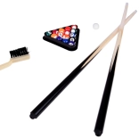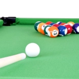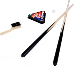 - 2 × tágo, sada biliardových gulí, biela guľa, trojuholník, kefka, krieda