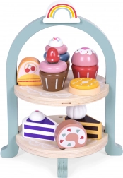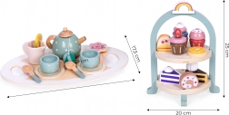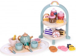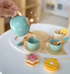 Táto skvelá sada vtiahne deti do sveta dospelých, kde si užijú fantastickú zábavu so svojou rodinou. Obsahuje všetko potrebné pre usporiadanie špeciálneho popoludnia: džbán, šálky, tanieriky a praktickú tácku. Ani čajové posedenie sa nezaobíde bez sladkostí, preto sada obsahuje farebné sušienky, tortičky a muffiny, ktoré potešia svojím realistickým vzhľadom. Vďaka týmto hračkám môže dieťa hrať rolu dospelého a pozvať vás na lahodný čaj a sladké občerstvenie. Okrem skvelej zábavy, vaše dieťa rozvinie svoju predstavivosť a manuálne zručnosti, a taktiež sa naučí, ako pripraviť lahodný čaj alebo kávu a osvojuje si pravidlá stolovania.
