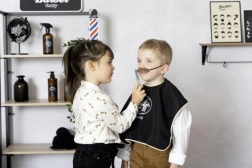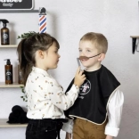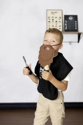 Holičská sada Moja prvá brada je perfektná pre malé nadšencov, ktorí chcú objaviť umenie holičstva! Vďaka plsteným bradám so systémom suchého zipsu môžete vytvárať mnoho rôznych kombinácií tvarov a dĺžok. Deti sa môžu baviť počas rolového hrania a napodobňovania skutočného holičského prostredia.