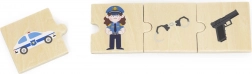 Deti priraďujú postavy (hasič, lekár, policajt, poľnohospodár, stavbár, pekár) k zodpovedajúcim nástrojom a vozidlám a prirodzene si rozširujú slovnú zásobu.